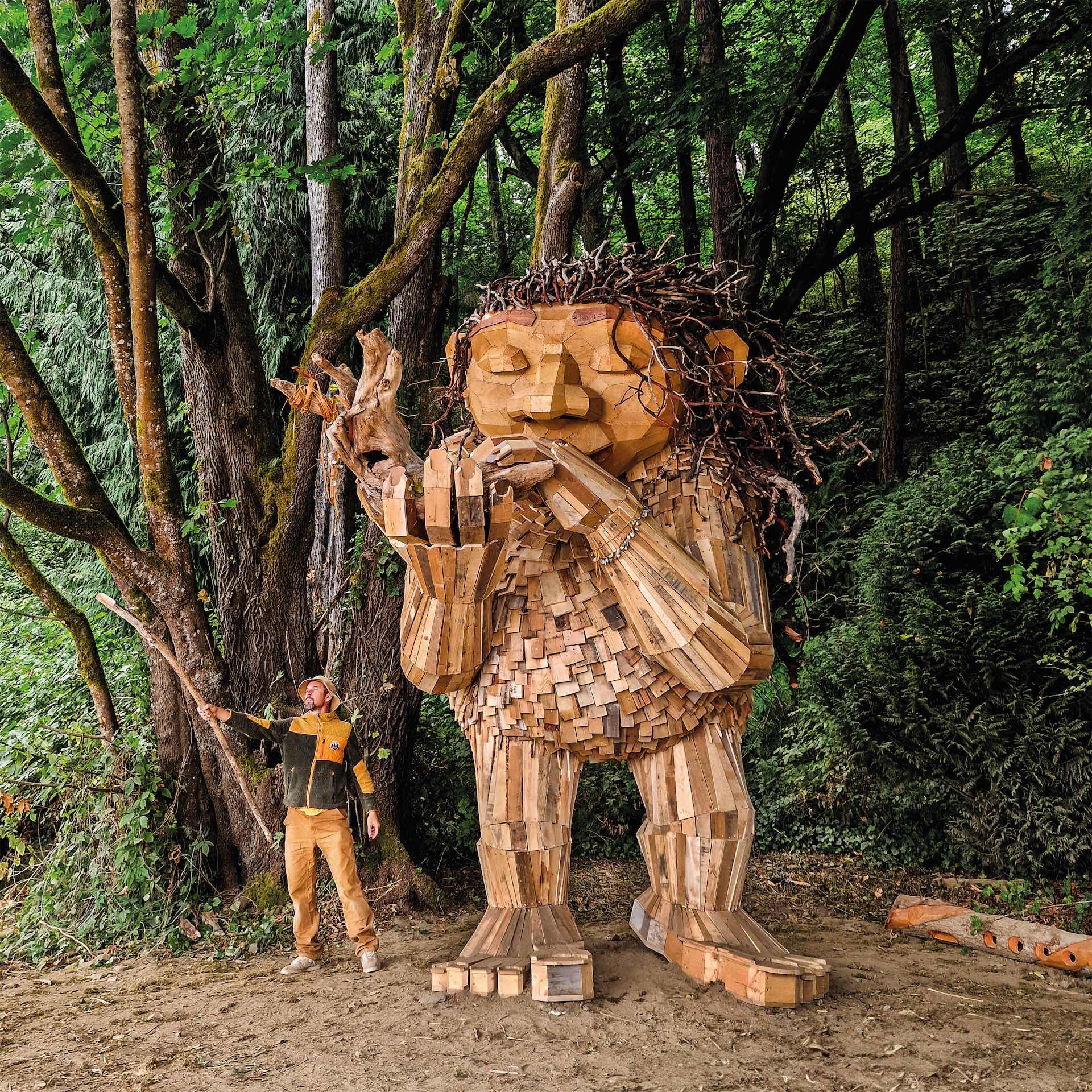 It’s very intuitive — like making a stew. I work with what I find around me. If there’s a tree stump, maybe the troll leans on it. If there are oak branches, those become its hair. I try to follow the path of least resistance. The environment and materials do a lot of the designing for me — I just listen and adapt.